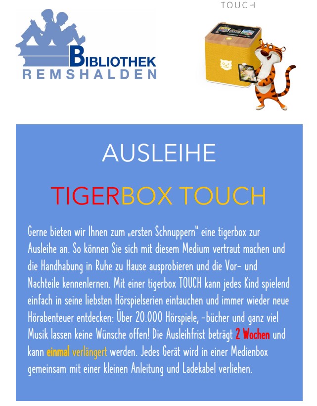Vor der Bibliothek befindet sich eine Medienrückgabebox, die die kontaktlose Rückgabe von ausgeliehenen Medien außerhalb der Öffnungszeiten ermöglicht. Dies erfolgt in eigener Verantwortung. Wir bitten darum bei voller Medienbox keine weiteren Medien einzuwerfen und die Klappe immer zu schließen.“