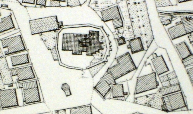 Bis 1954 war der heutige Parkplatz zwischen Rathaus und Kirchenmauer der Gemüsegarten der Schulmeister. Unterhalb des Gemüsegartens, direkt an die Kirchenmauer angebaut, stand seit 1812 das Spritzenhäuschen. Es diente der Freiwilligen Feuerwehr zur Unterbringung ihrer erst tragbaren, dann fahrbaren Feuerwehrspritze. Da es für die modernen Fahrzeuge bald viel zu klein war, wurde es zu Gunsten der Parkplätze abgebrochen, und die Geräte in die Mittlere Kelter verlagert.