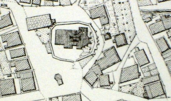 Für die Toten, die nach dem Brauch des Mittelalters nahe den Altären der Kirchenheiligen bestattet sein wollten, gab es während dem Bau der neuen Kirche keinen Platz mehr innerhalb der Ringmauer. Ein neuer Friedhof wurde daher westlich der Kirche (heute Kirchplatz 5-7) angelegt und bis 1712 als Oberer Friedhof benutzt. Von dort stammen vermutlich auch die heute in die Stützmauer der unteren Terrasse eingemauerten insgesamt 6 Steinkreuze mit den eingemeißelten Hapen.