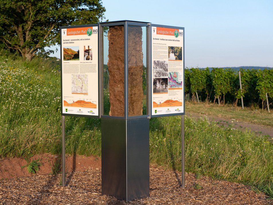 Der Geologische Pfad wurde vom Heimatverein Buoch e.V. initiiert und führt als Rundwanderung von Grunbach über Buoch zurück zum Kirchplatz in Grunbach oder optional mit weiteren Stationen in Richtung Winnenden. Auf dem östlichen Abschnitt des Rundwegs befinden sich 20 Stationen mit umfassenden Informationen zu der Schichtenfolge des Keupers, verschiedenen Geotopen wie den Grunbacher Wasserfall und seine frühere und auch noch heutige Bedeutung für die Landschaftsgestaltung und deren Nutzung. Der Geologische Pfad führt durch alle landschaftstypischen Formen und bietet insbesondere in und über den Weinbergen vielfach wunderbare Aus- und Fernblicke ins Remstal und darüber hinaus. Der Weg ist durchaus anspruchsvoll und sollte nur mit festem Schuhwerk begangen werden. Ein besonderes Highlight des Rundwegs ist der Aussichtspunkt Steinfelsen. Durch seine Lage in den Weinbergen oberhalb Grunbachs bietet er einen grandiosen Ausblick in das Remstal sowie Richtung Stuttgart. Zwei Landschaftsliegen laden zum Verweilen ein.