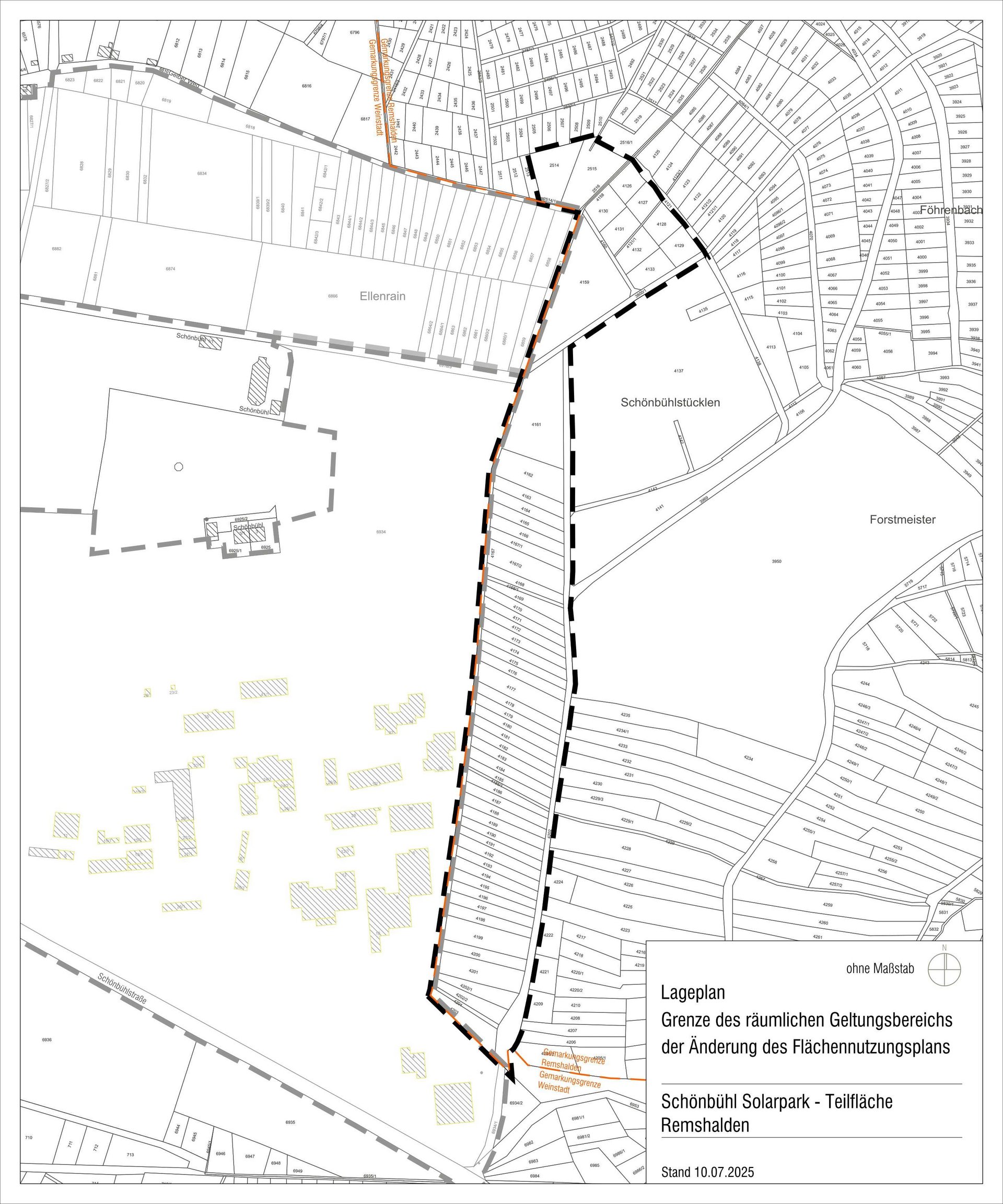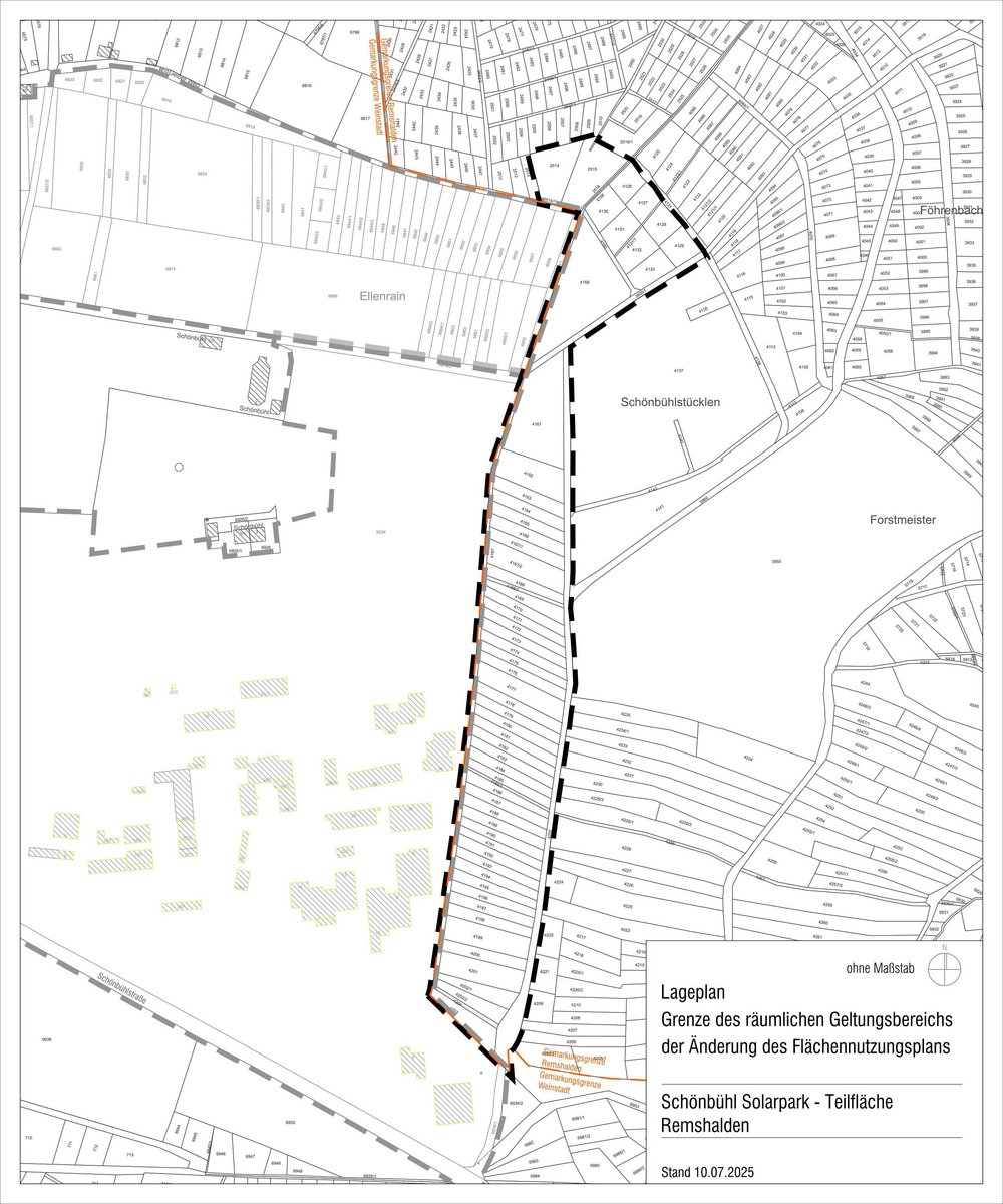 Der Gemeinderat der Gemeinde Remshalden hat am 06.10.2025 in öffentlicher Sitzung den Aufstellungsbeschluss für den Bebauungsplan mit den Örtlichen Bauvorschriften „Schönbühl Solarpark - Teilfläche Remshalden“ gefasst. Der Flächennutzungsplan wird für diesen Bereich im Parallelverfahren nach § 8 Abs. 3 BauGB geändert.
